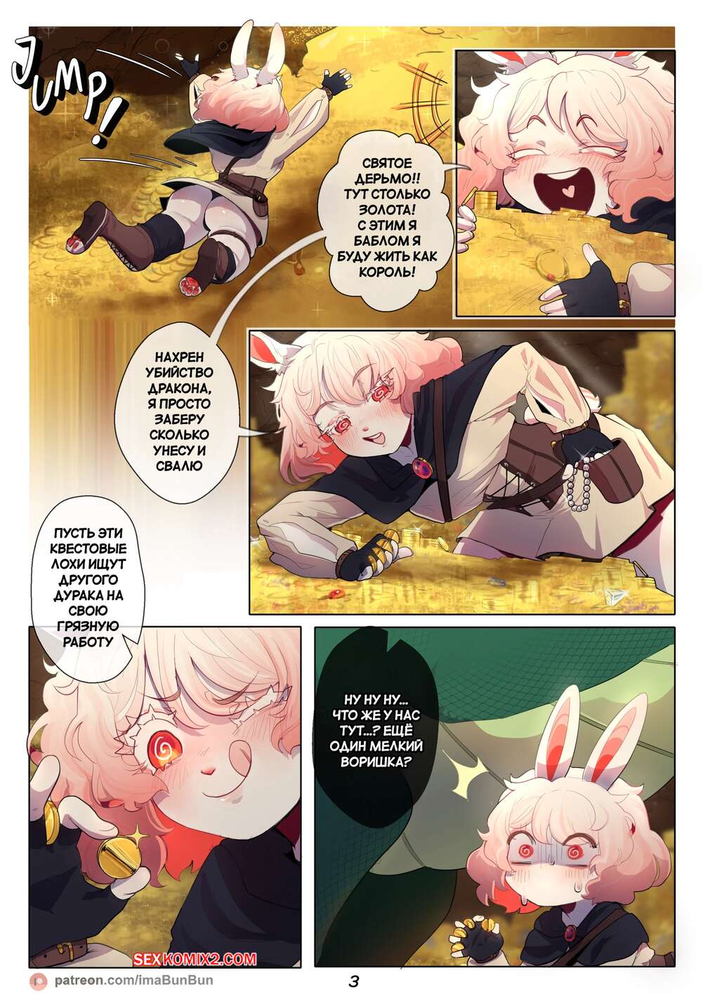 Порно комикс Сокровища дракона. Dragons Hoard. ImaBunBun. Горячая блондинка нашла пещеру с сокровищами и была очень рада, но ее планам помешал дракон, охраняющий золото. Он насадил девушку на свой член и хорошенько ее оттрахал.