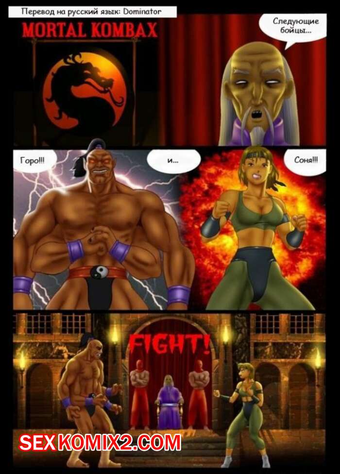 Порно комикс Мортал комбат. Соня против Горо Монстр стал сражаться с сексуальной девушкой на арене. Сперва она нанесла ему несколько сильных ударов, но затем он схватил ее, раздел и мощно отъебал ее своим хуем, доставив ей огромное удовольствие.