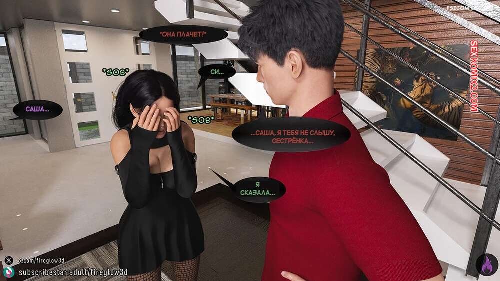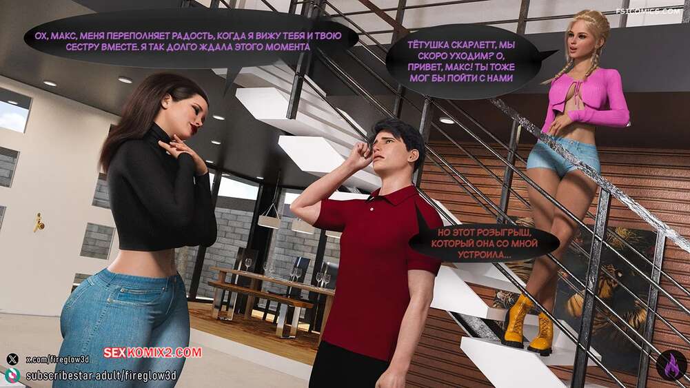 Порно комикс Табу обнимашки. Часть 3. Taboo Snuggles. Fireglow3D Макс спустился вниз, чтобы поздороваться со своей сестренкой. Девушка шутит с парнем и целует его в щеку, а он не может отвести взгляда от ее больших сисек.