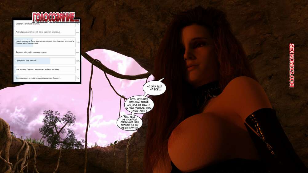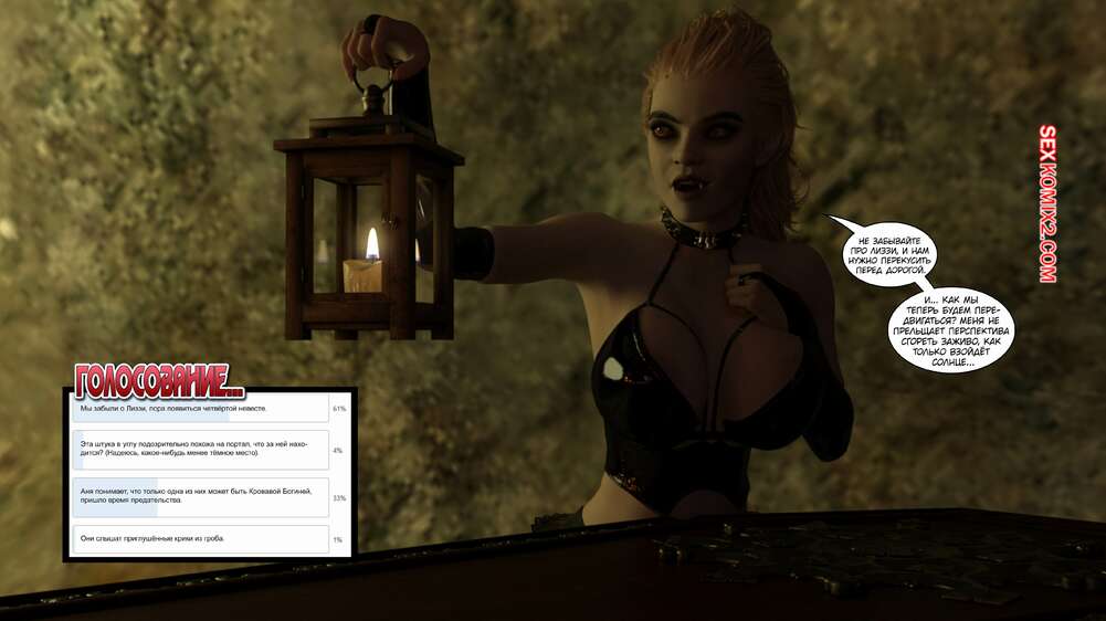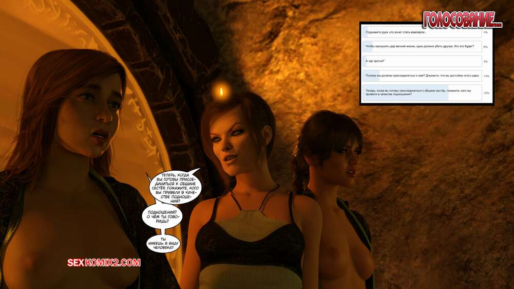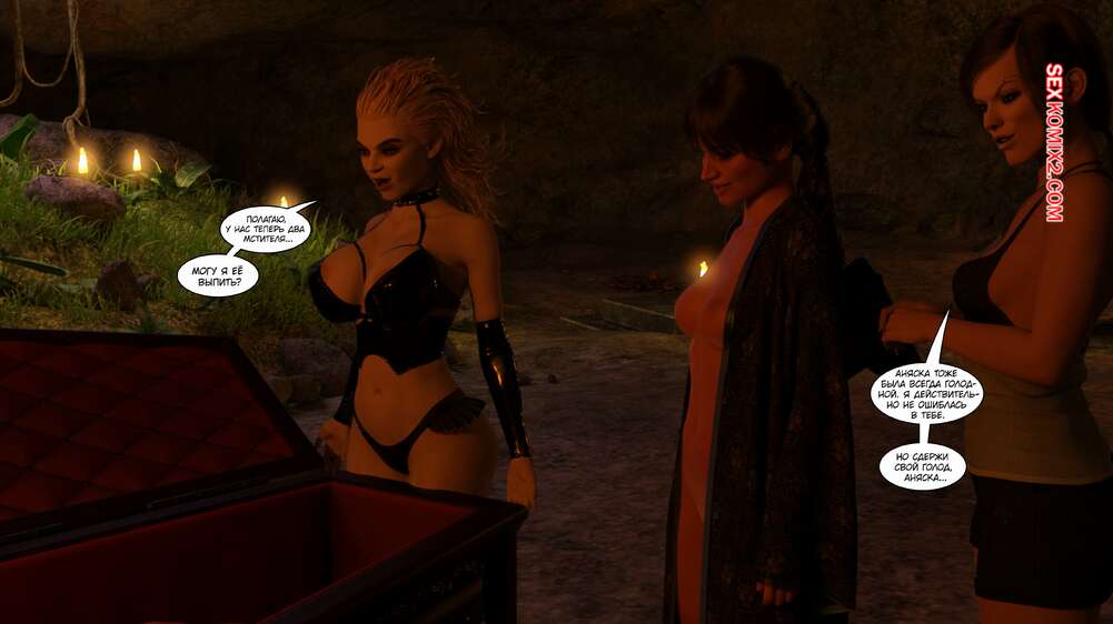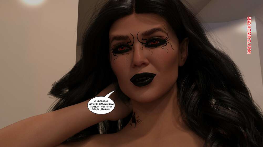 Порно комикс Время вампиров. Часть 2. Bite. Cantraps Похотливая брюнетка пригласила парня к себе, желая пошалить. Девушка разделась и возбудила парня шикарным телом, после чего оседлала его твердый хуй и дала выебать свою пизду.