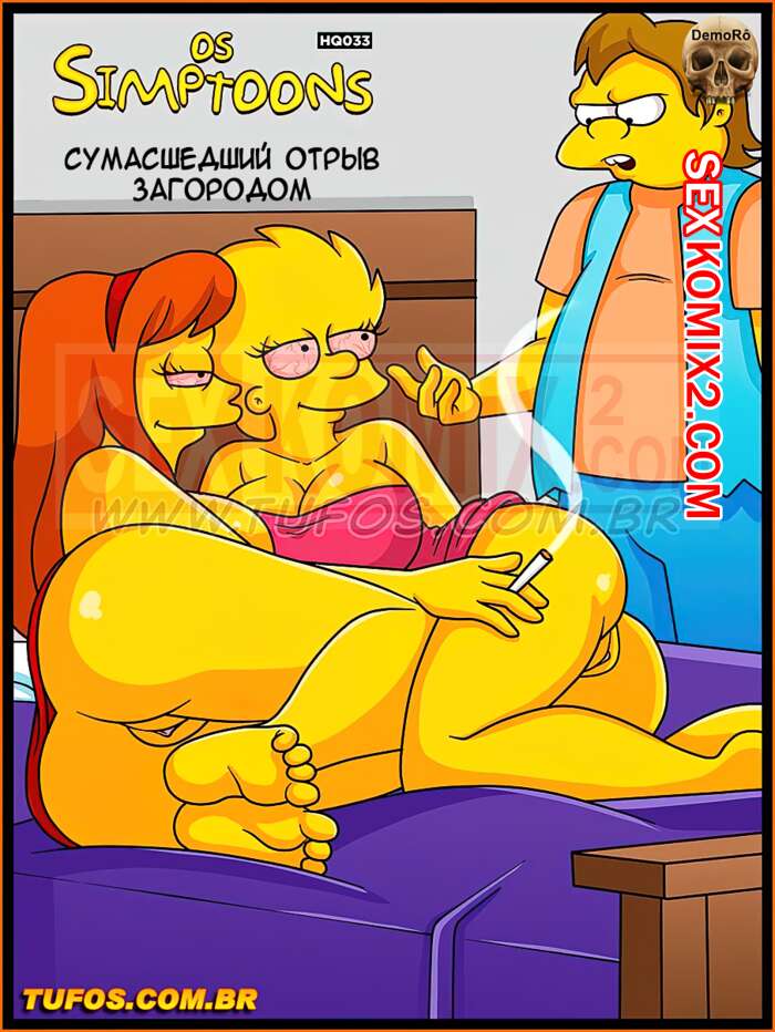 Порно комикс Симпсоны. Часть 33. Сумасшедший отрыв за городом. Студенты уехали за город и начали активно отдыхать. Парни открыли пива, а девушки пустили по кругу косячок. Они так возбудили от новых ощущений, что захотели трахаться. Парней долго уговаривать не пришлось.