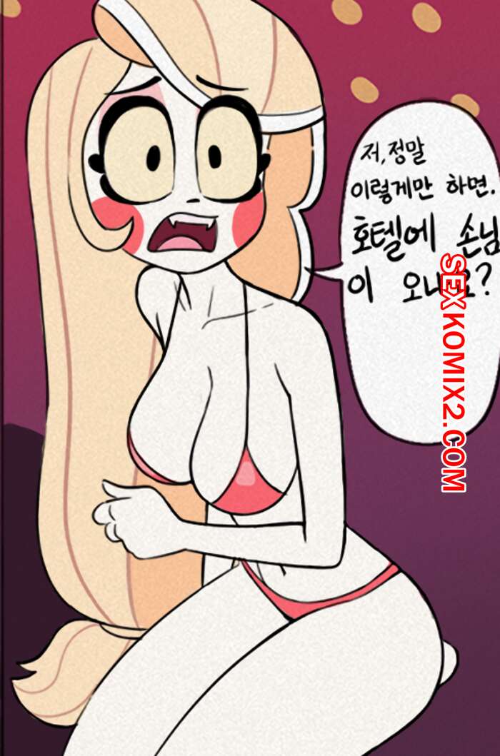 Порно комикс Отель Хазбин. Charlie Magne Mangamaster. НЕ русский Сисястая шлюха блондинка попала в руки двух демонов, которые решили поиграться с ее дырочками. Они стали ебать ее ротик своими большими черными хуями, после чего устроили ей двойное проникновение.