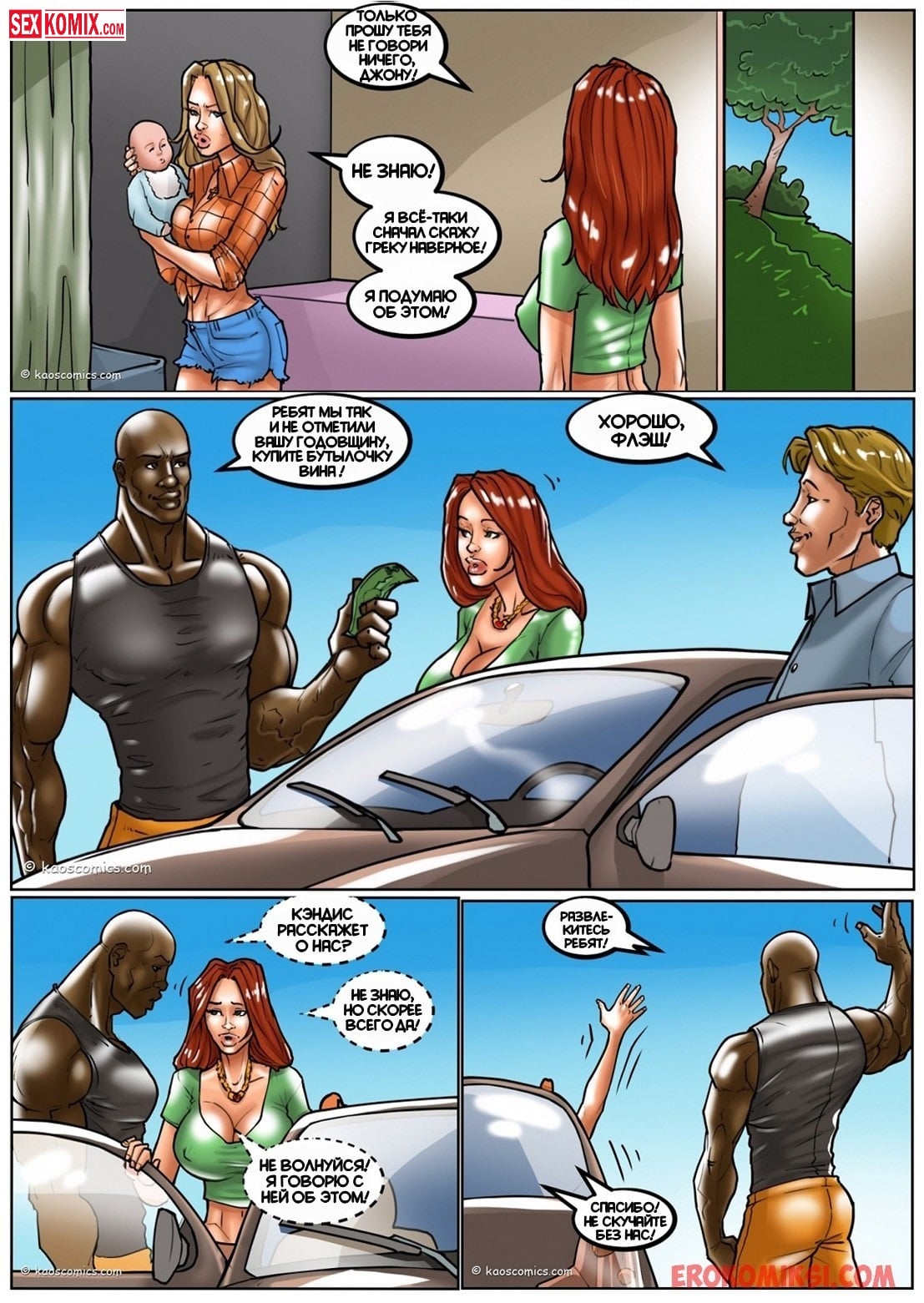 Порно комикс Флэш. Часть 3. Девушка по имени Кэндис застукала своего мужа с подругой и развелась с ним, но его огромный черный член не выходил из её головы. Каждый вечер она представляла, как занимается сексом со своим бывшим мужем. Девушке приходилось продолжать с ним общаться, как у них общие друзья. И в выходной вечер, после выпитого алкоголя она не смогла удержаться и набросилась на него, девушка умоляла трахнуть её, как раньше. Чернокожий парень не смог отказать, его чувства к ней тоже ещё не угасли.