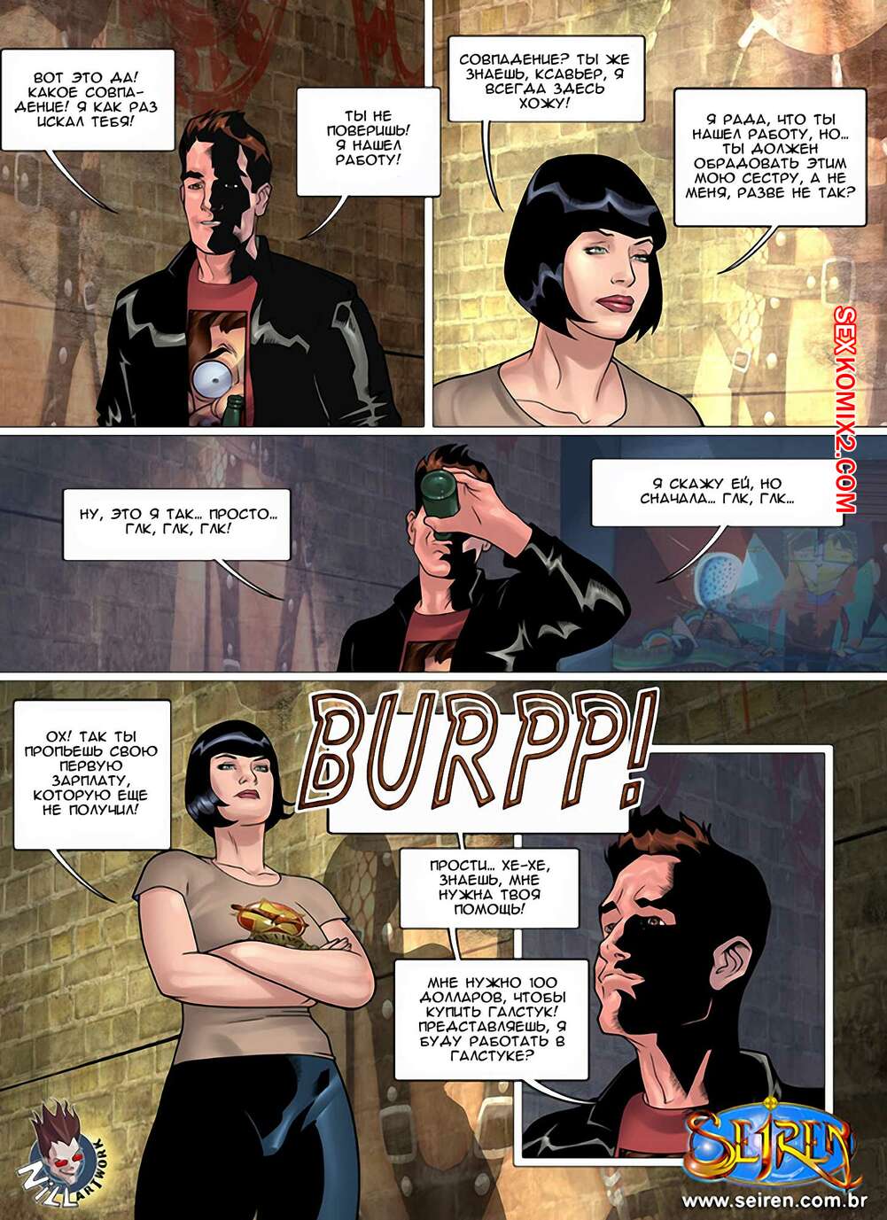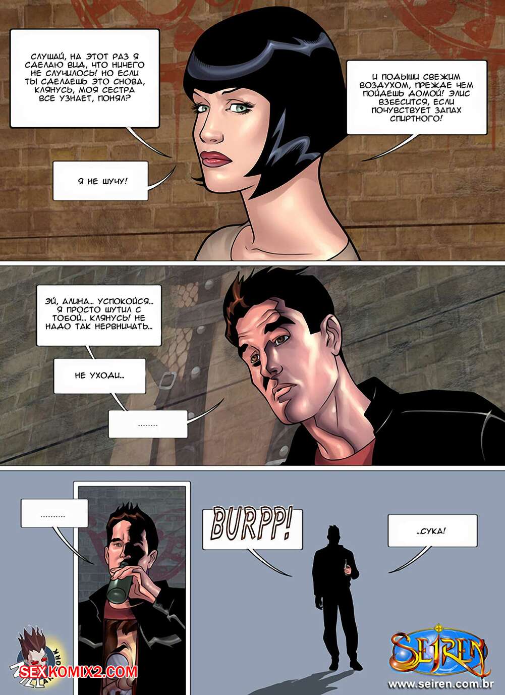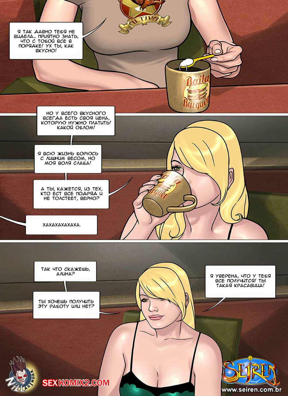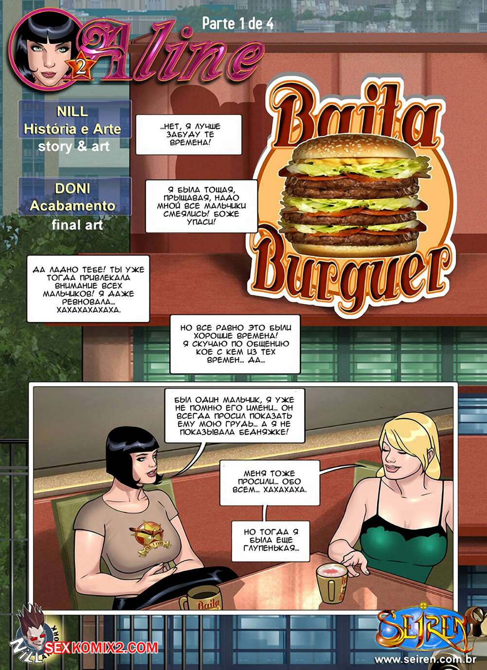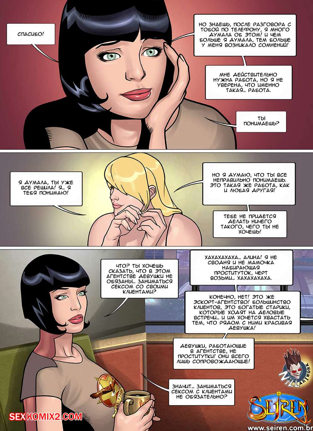 Порно комикс Алина. Часть 1. Aline. Seiren Горячая красотка брюнетка общалась со своей подругой, которая стала заниматься очень необычной работой и получает много денег. Для этого нужно трахаться с разными мужиками и, хорошенько подумав, девушка решила согласиться.
