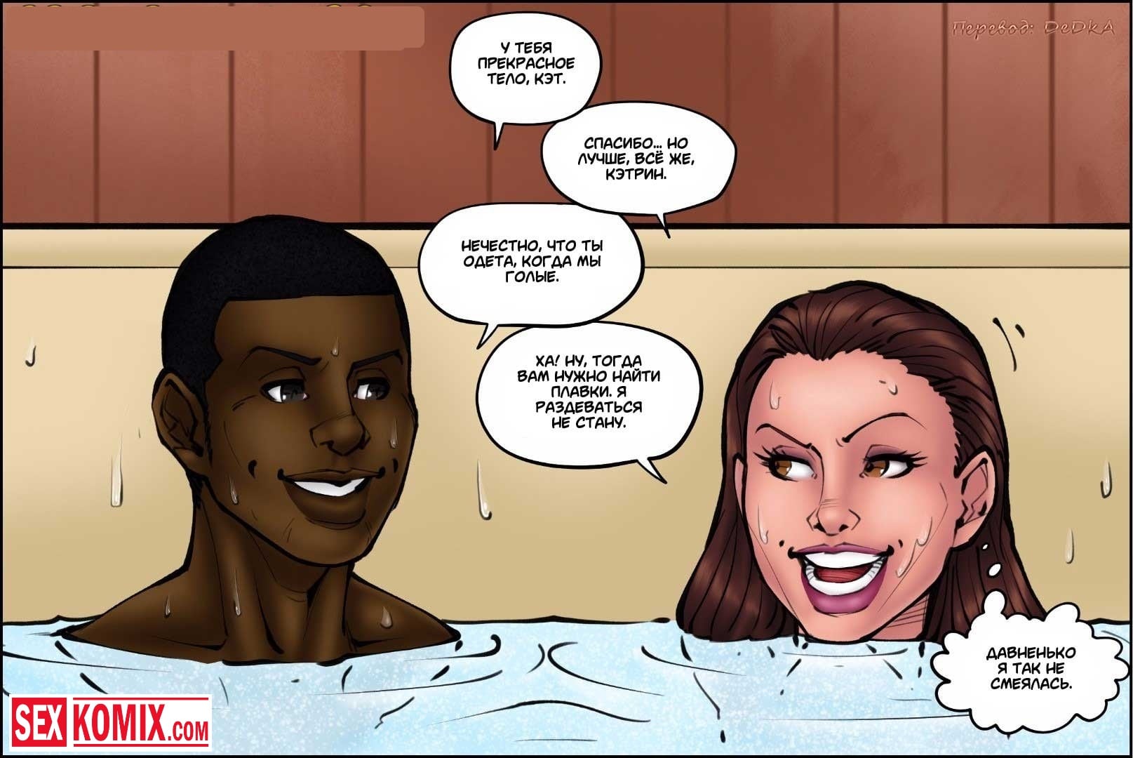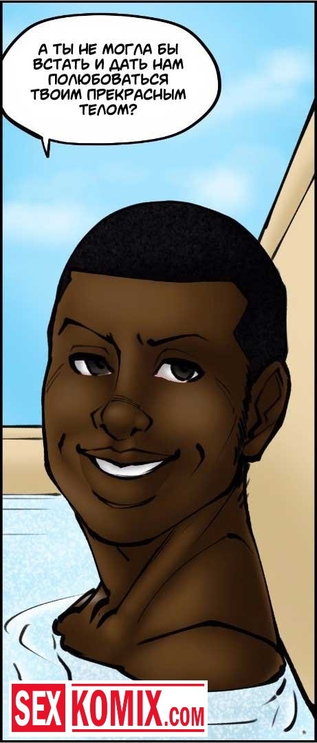 Порно комикс Доктор шлюха. Часть 2. Сексуальная женщина, которая работает доктором в мужской больнице, накануне обследовала двух чернокожих парней с большими членами. И предложила им работу в своём доме, чтобы они убирали её бассейн. Парни с радостью согласились, тем более это был шанс для того, чтобы заняться с ней сексом. Когда они пришли к ней домой, они принялись к работе и постоянно наблюдали за своей сексуальный работодатель. После нескольких бокалов вина женщина стала раскрепощенной, и разрешила прикоснуться к себе.