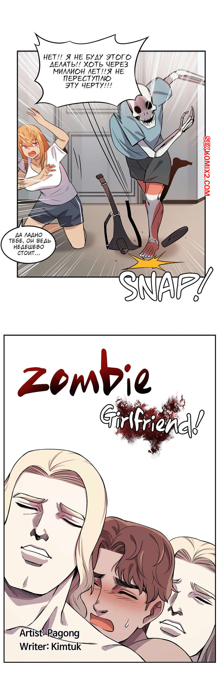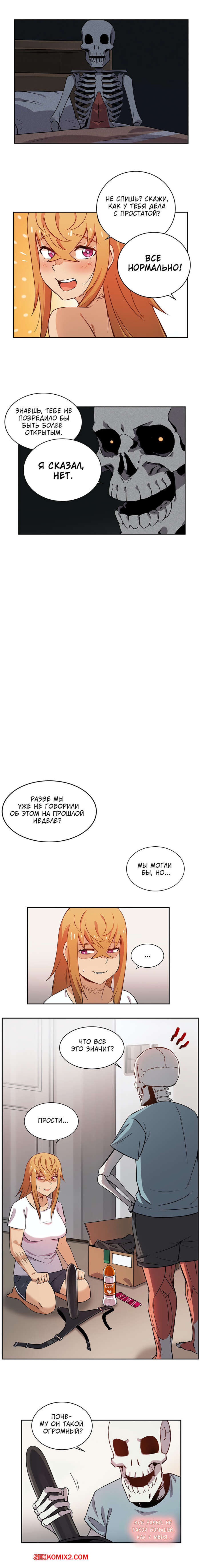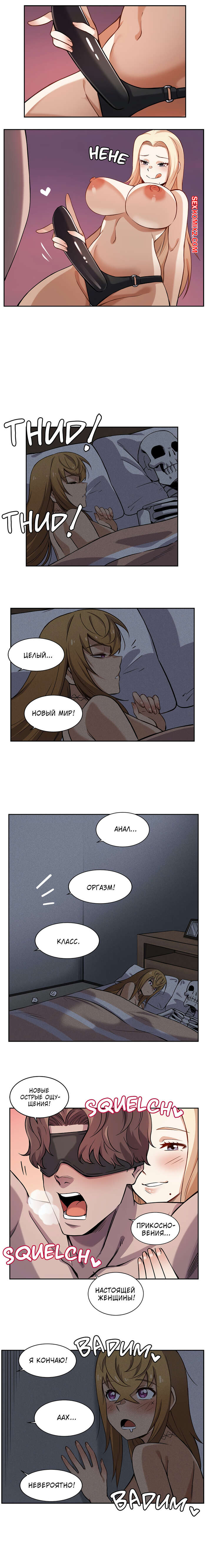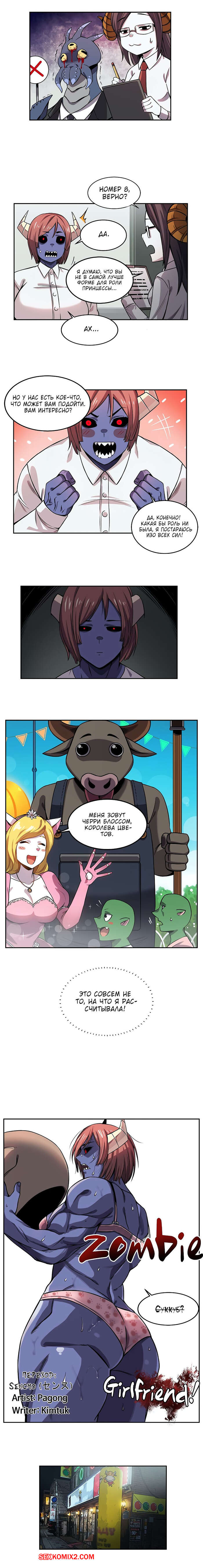 Порно комикс Моя девушка зомби. Части 7 и 8. Girlfriend Zombie Горячая блондинка решила испытать новых эмоций со своим парнем, поэтому прикупила себе большой черный страпон. Парень нормально отнесся к таким желаниям красотки и принялся ей сосать.
