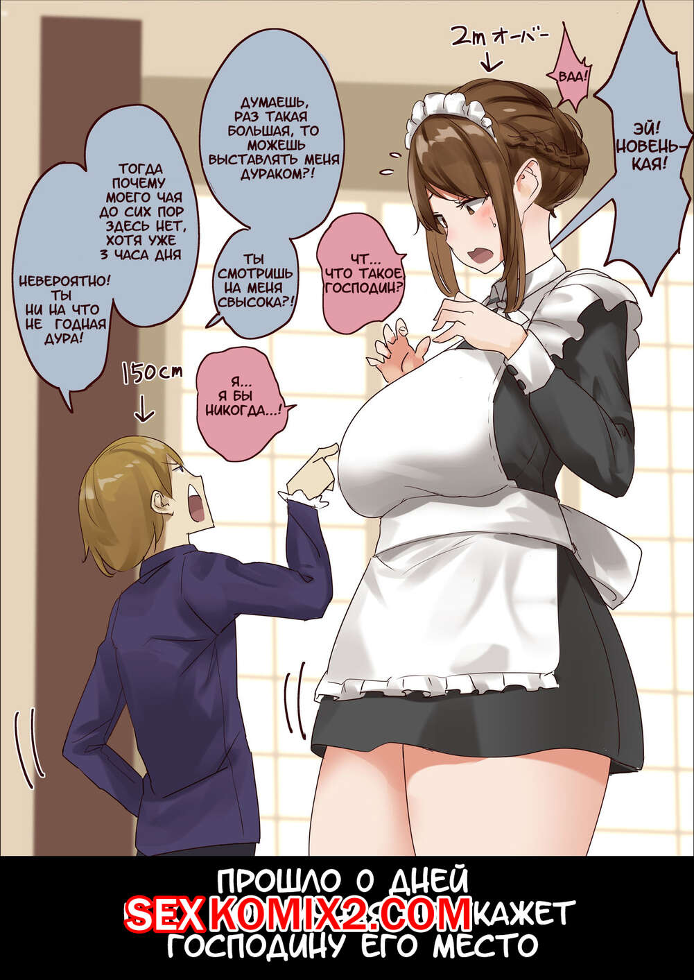 Порно комикс Господин и горничная Маленький чувак стал засматривать на свою сексуальную горничную, которая для него была просто гигантская. Она заметила это и решила устроить ему настоящие сексуальные игры.