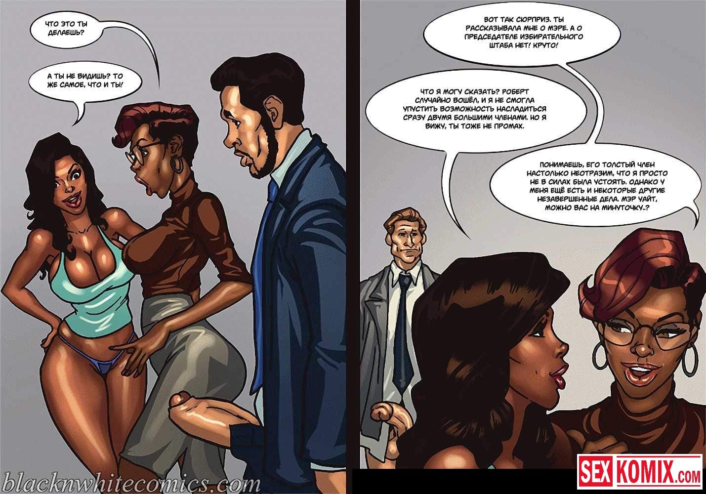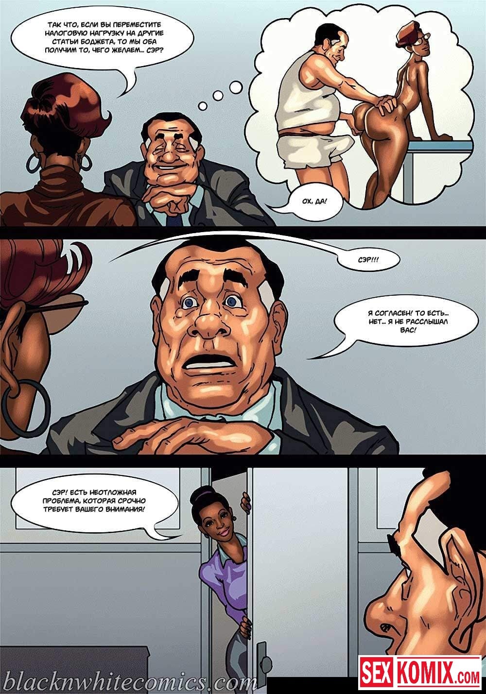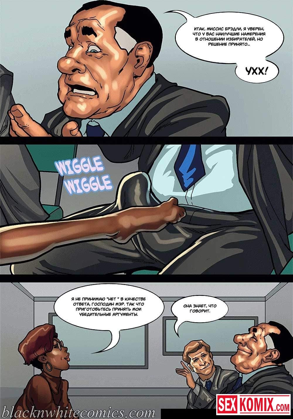 Порно комикс Мэр. Часть 3. Эпизод 2. Смелая женщина политик пытается надавить на мэра города своими связями. Она приезжает в его офис для переговоров, но коварный мужчина разрабатывает план, как убрать ее с дороги. Ему нужно найти компромат на эту женщину, его помощники сообщают, что такого нет. Тогда приходится импровизировать, вовремя их совещания мужчина соблазняет сексуальную женщину и занимается с ней сексом, пока его сотрудники снимают все на видеокамеру.