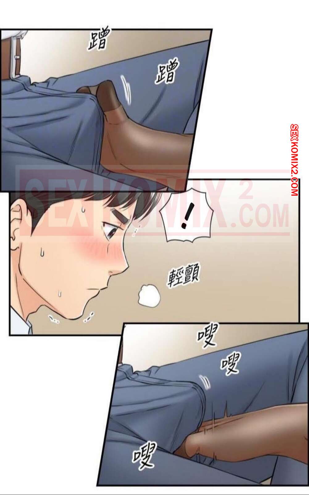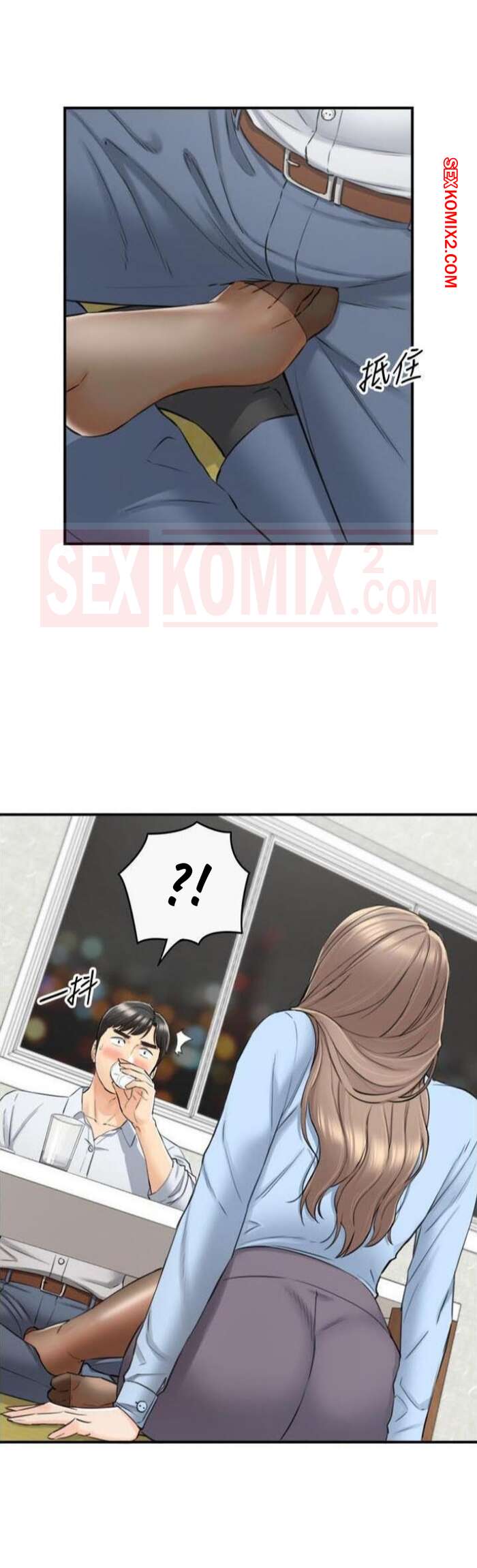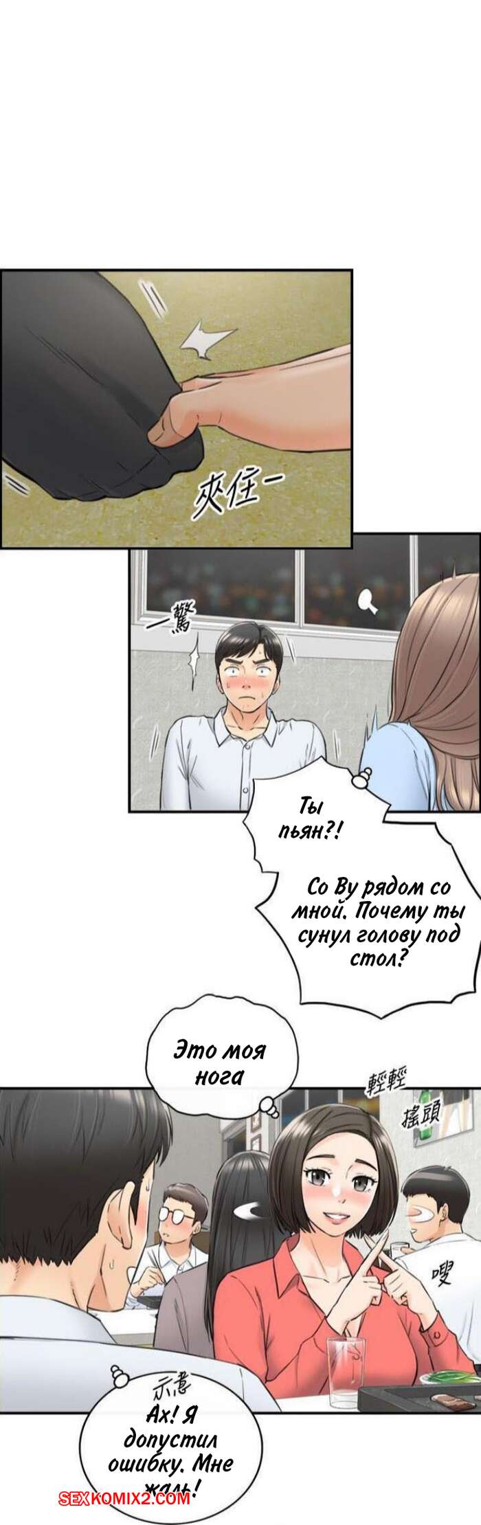 Порно комикс Молодой босс. Часть 92. Young boss Горячая красотка брюнетка продолжила ласкать член парня своей ножкой, но они чуть не спалились, ведь парня попросили встать и сказать речь. К счастью, им удалось отмазаться и затем парня стала ласкать ногой еще одна девушка.