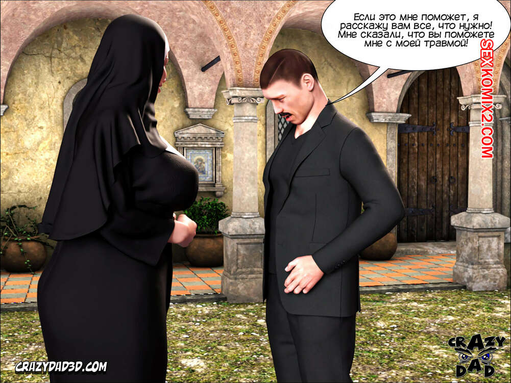 Порно комикс Жена проповедника. Часть 22. The Shepherd Wife. CrazyDad3D Пастор отправился к монашкам, чтобы разобраться со своими детскими травмами, а тем временем его милфа жена решила сделать массаж своему отцу с большим хуем, а затем классно с ним поебаться.