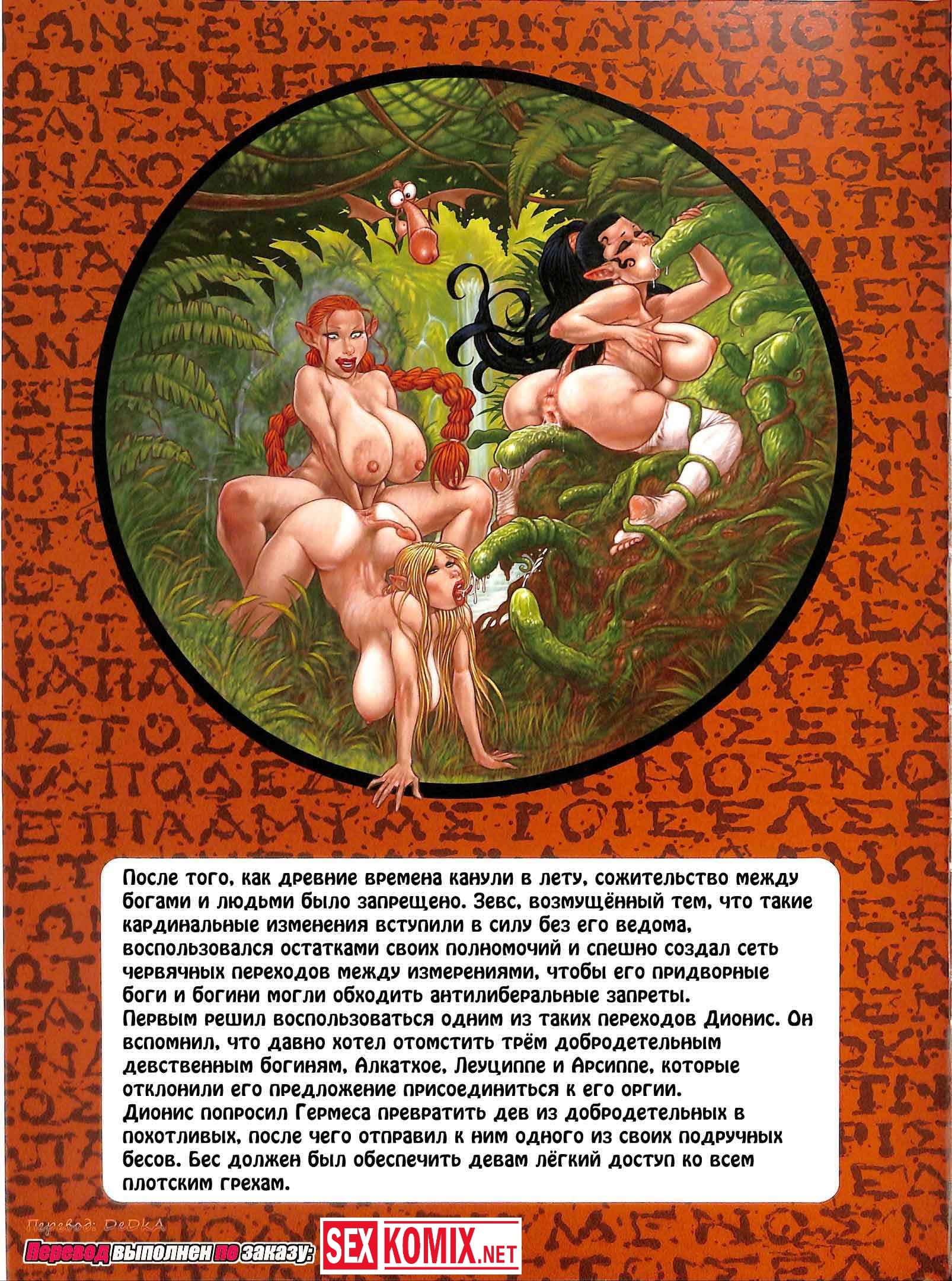 Порно комикс Очередь к дьяволу. Трое сексуальных девушек развлекались в лесу, они не знали как друг друга развлечь. Красотки засовывали в свои киски разные предметы в надежде получить от этого удовольствие. Но как будто по их заказу появился демон из ада, накаченный мужчина и вместо одного, у него было сразу два члена. Он без промедления начал трахать ненасытных девушек.
