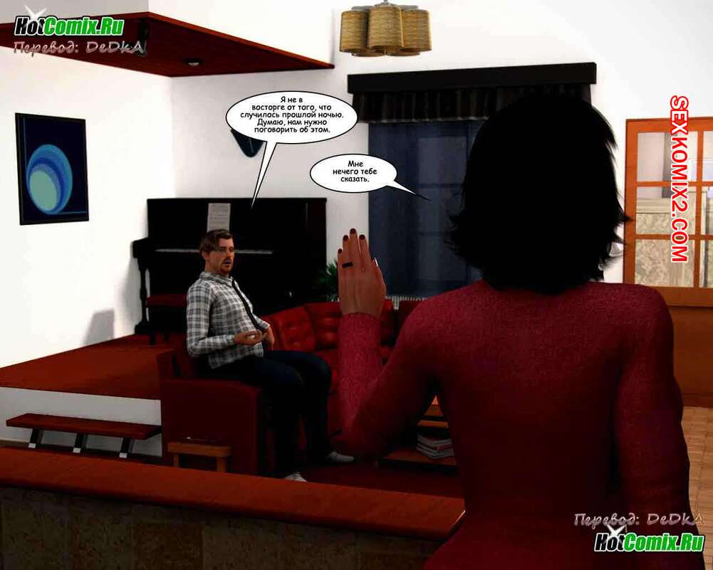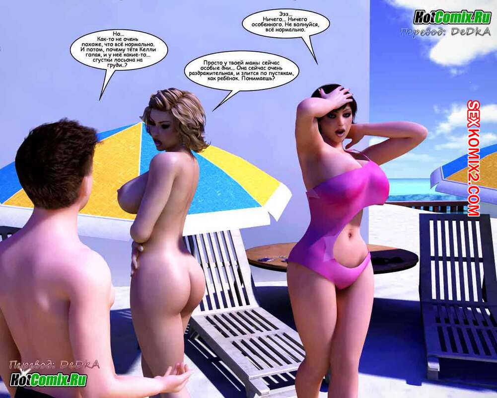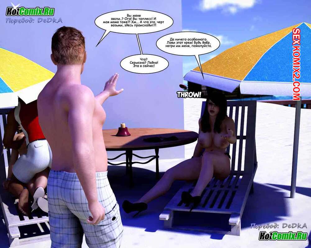 Порно комикс Кто это сделал Семейка уехала на остров, где милфа брюнетка решила повеселиться со своим сыном. Сучка уединилась с ним и стала сосать большой хуй сына, после чего дала ему себя хорошенько выебать.