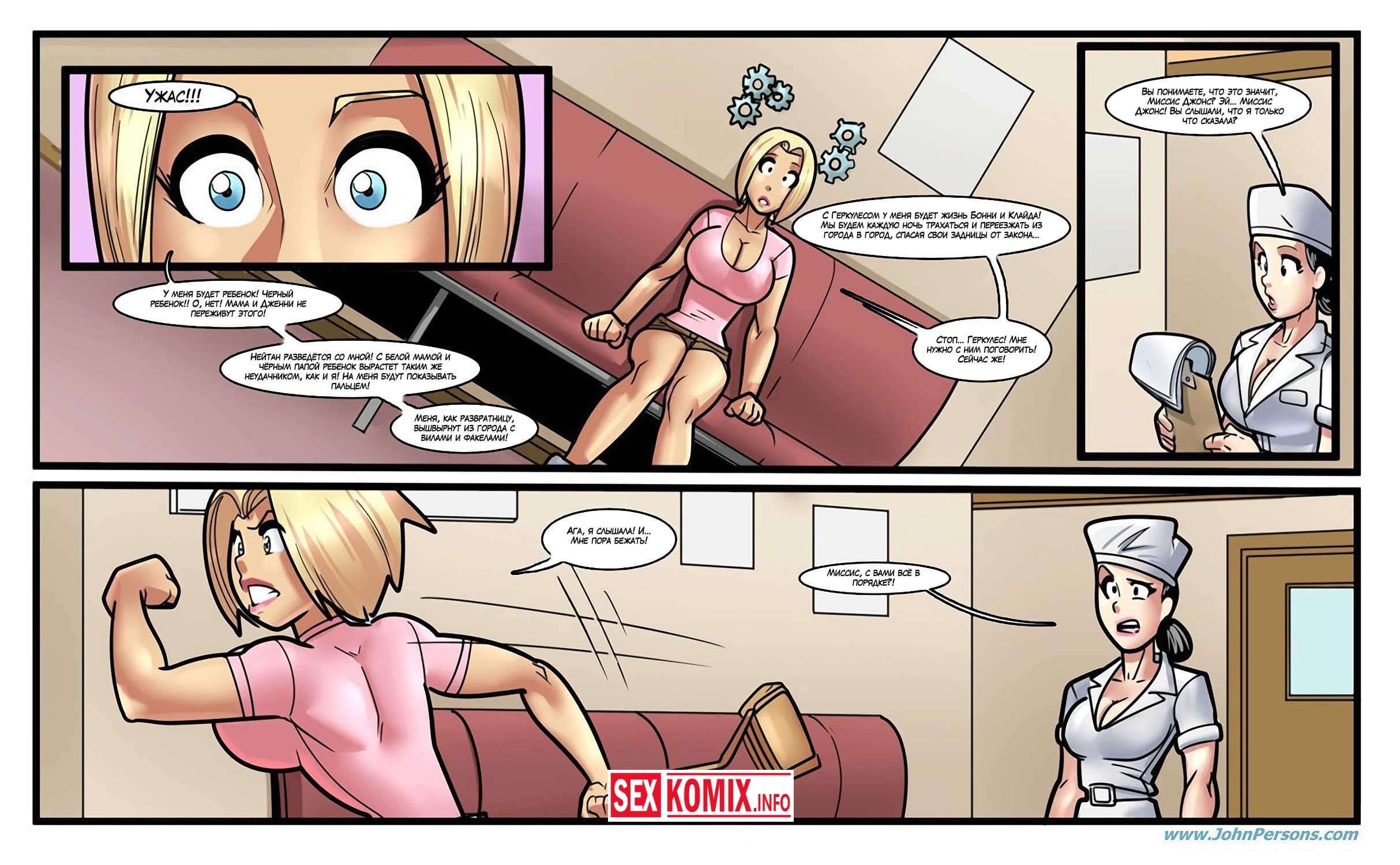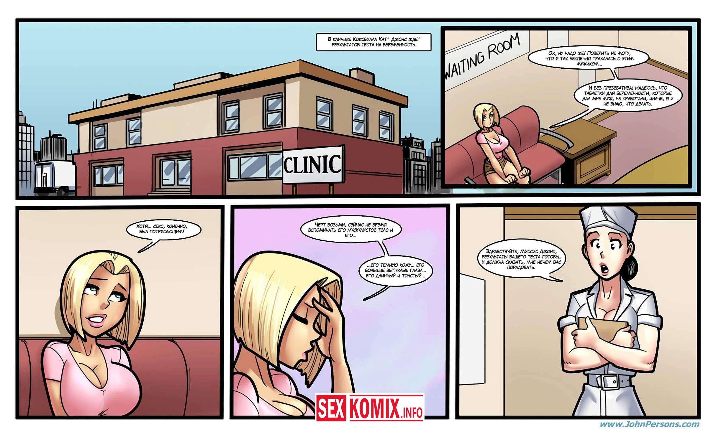 Порно комикс Катт ошиблась с беременностью. Очень сексуальная и развратная блондинка с большими сиськами пришла в больницу. Чтобы сдать анализ за беременность. Ожидая в приемной, она вспоминает вчерашний вечер и ночь. Несколько часов подряд девушка трахалась с незнакомым чернокожим парнем, его огромны член стоял как камень и не давай ей передохнуть.