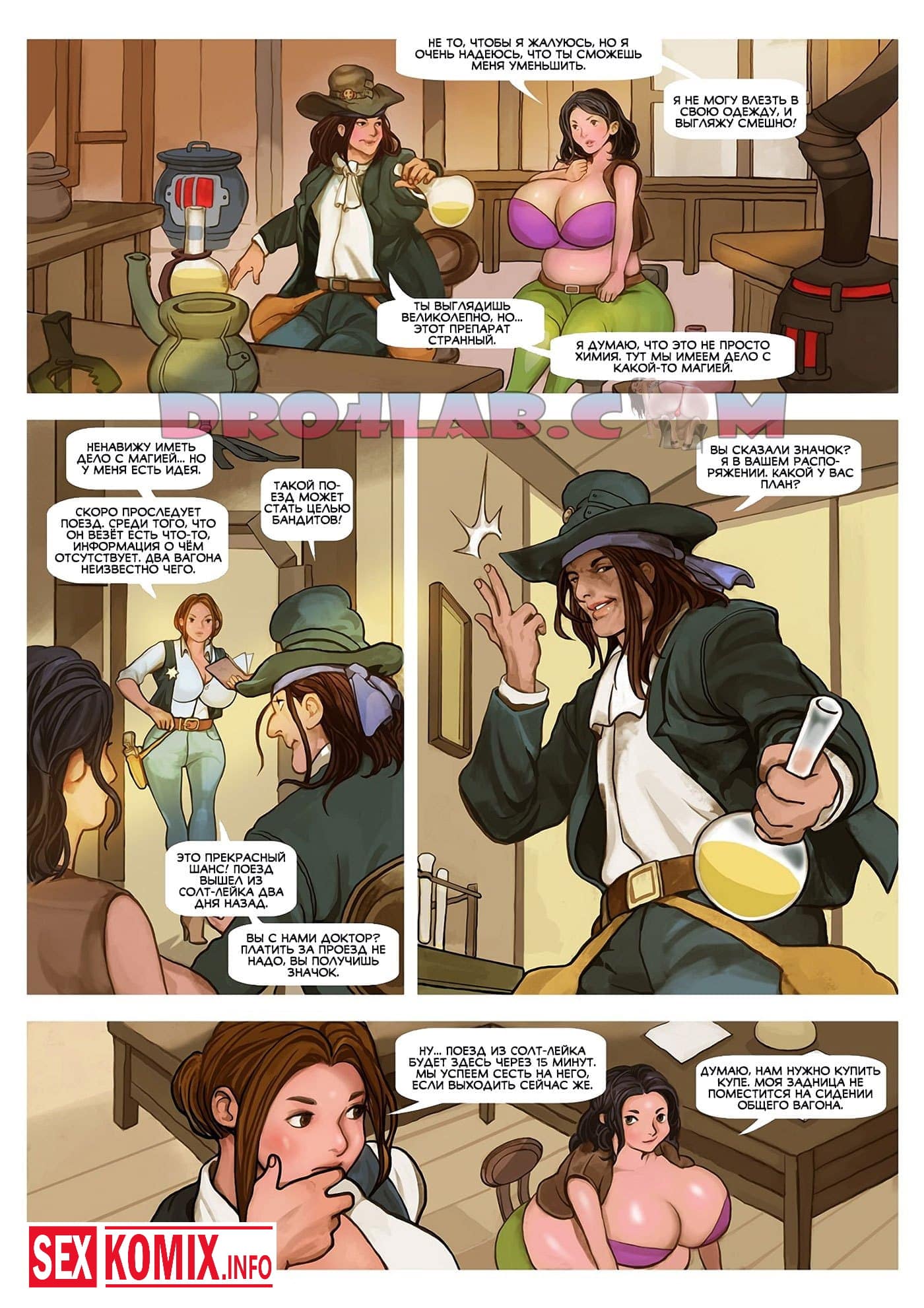 Порно комикс Змеиное масло. Часть 2. Алхимик-змеелов после жаркой ночи с двумя красотками, которые обрели новые сексуальные тела благодаря его змеиному маслу, не захотел останавливаться и решил продолжить развлечения. Но в этот раз не рассчитал и дал красоткам слишком много масла, от этого они начали очень сильно расти по одна из них не превратилась в великана.