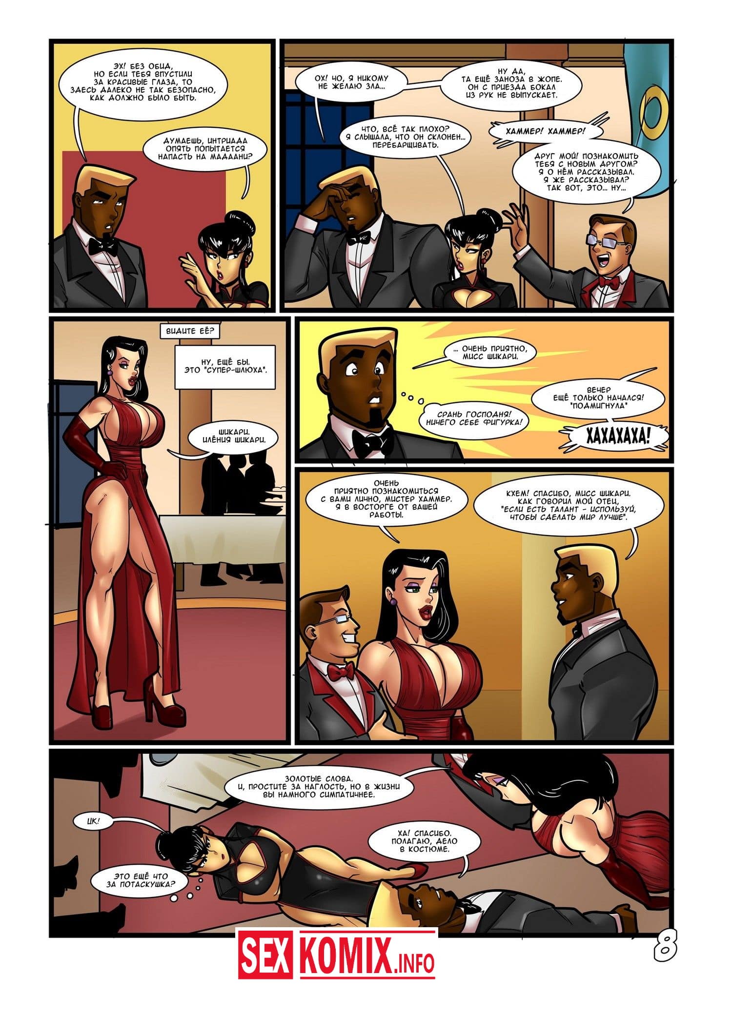 Порно комикс Убийственные ножки. В мире где супер герои встают на защиту простых людей, тоже есть сексуальные героини. Про одну из таких этот комикс, она не носит обтягивающий костюм, но все же защищает слабых. Её ноги сногсшибательно выглядят и парни не могут отвести от них свой взгляд. Именно в них кроется её основная сила, так как эти длинные ноги смертельное оружие.